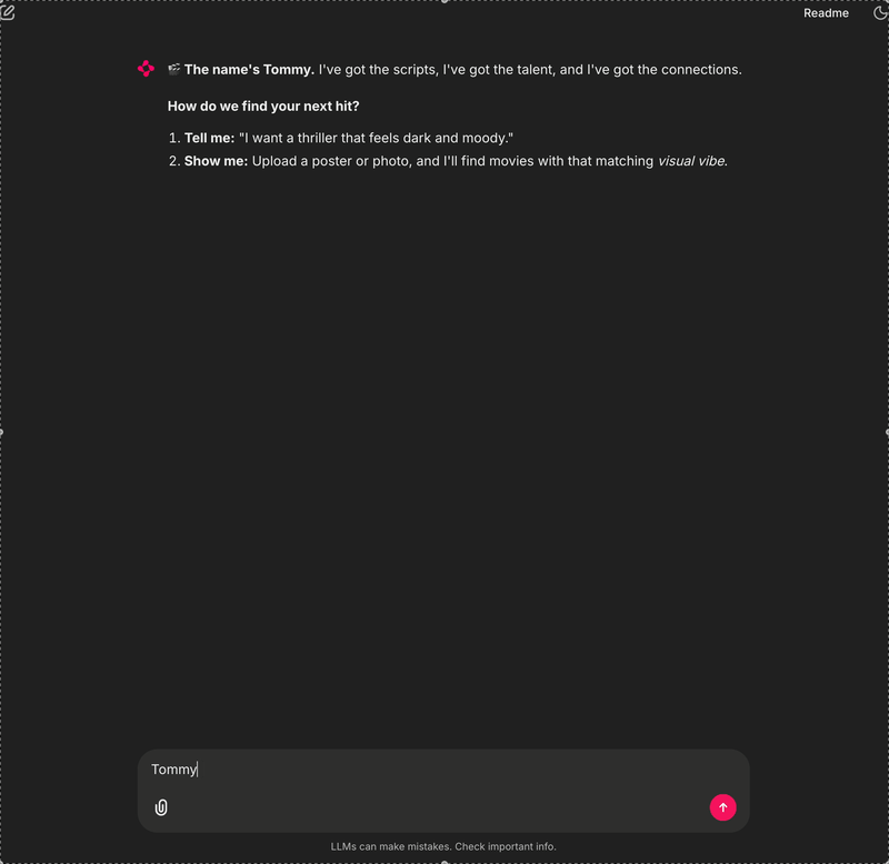However, a raw LLM (Large Language Models) response can be dry. I wanted a specific user experience, a fast-talking 1960s Hollywood Agent named "Tommy."
